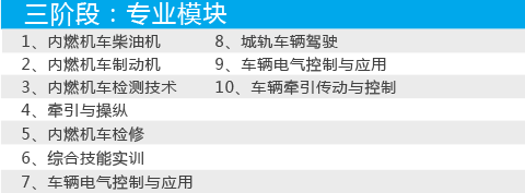 通过本专业全面系统的学习,毕业生具有扎实的基础理论知识,较强的实际工作能力,适应到铁路局、地铁公司从事电力机车司机、电动列车电气钳工、电力列车机械钳工、车辆钳工等工作;也可选择到中铁电气化局、工矿企业、港口等单位内燃机车运用检修部门,从事内燃机车驾驶、运用和检修方面工作。
